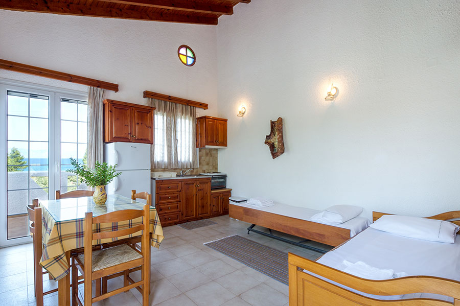 Our apartments are spacious, suitable for families, with large balconies viewing the sea and the hills around or huge, stone-built terraces by the garden.